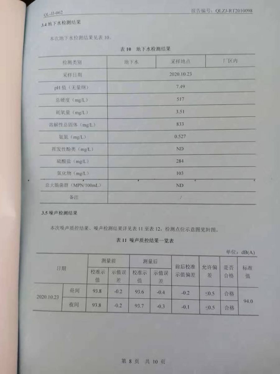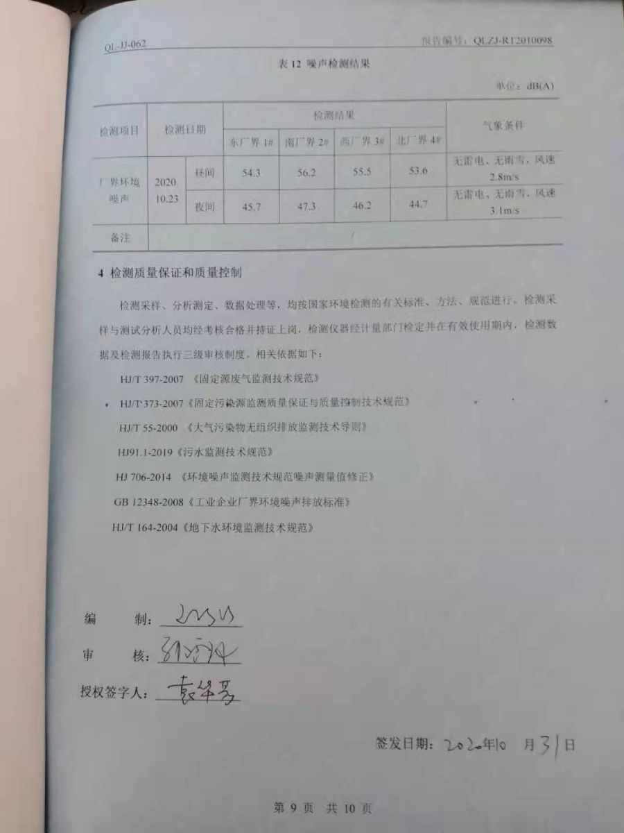 日照廣大建筑材料有限公司第四季度檢測(cè)報(bào)告