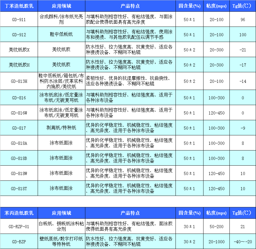 主要產(chǎn)品為丙烯酸脂類乳液和丁苯膠乳。公司擁有現(xiàn)代化的自動(dòng)生產(chǎn)線和先進(jìn)的檢測儀器,依靠嚴(yán)格的管理、精湛的生產(chǎn)工藝,先后開發(fā)生產(chǎn)出苯丙、純丙、硅丙、醋丙、羧基丁苯、助劑等六大系列三十多個(gè)品種的建筑、紙品、地毯、紡織、防水用乳液及助劑,年生產(chǎn)能力達(dá)10萬余噸。